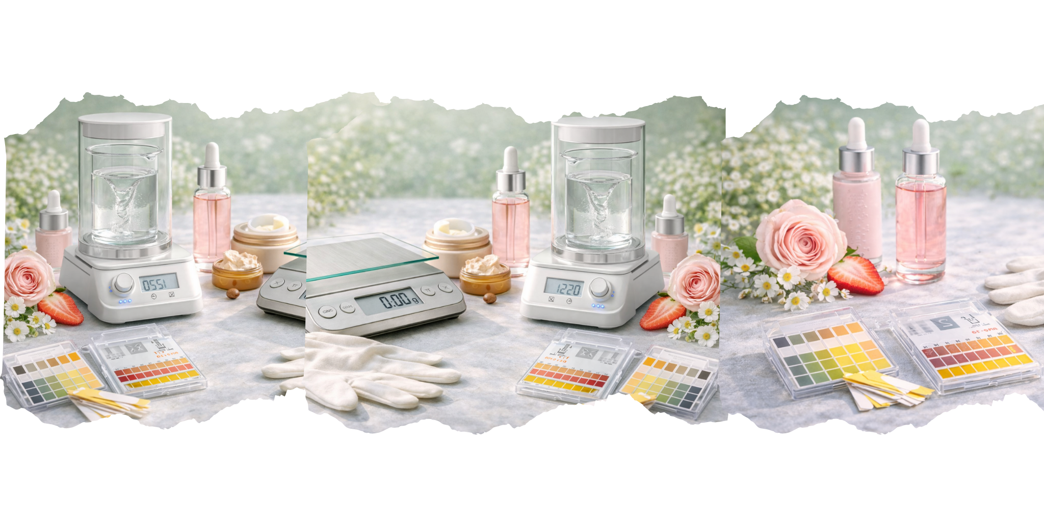 Formulation tools designed for accurate measuring, mixing, and handling of cosmetic ingredients, supporting safe and consistent product creation.